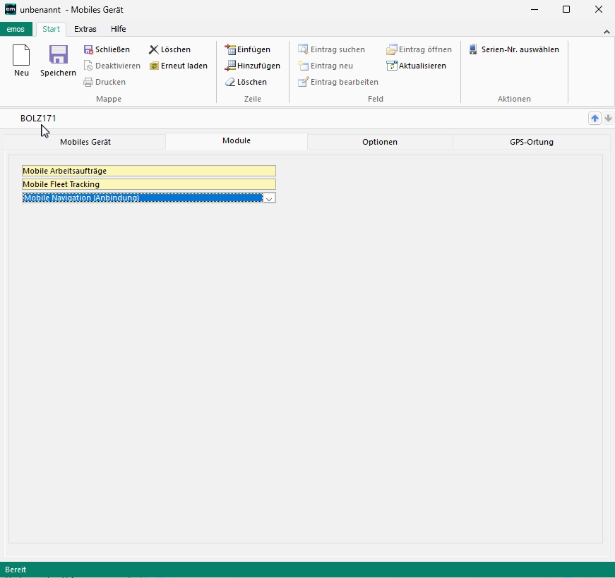 Als Name vergeben wir die Gerätenummer im Format BOLZ ###. Also z.B. BOLZ 171. (Bitte mit Leerzeichen zwischen BOLZ und Nummer). Ebenso bitte auch das gleiche im Feld Bemerkung eintragen! Dies ist im Screenshot noch nicht drin.