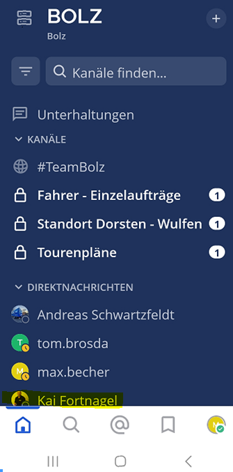 Unter direkt Nachrichten findet ihr eure Einzelchats über die ihr bitte auch die Kollegen/Kolleginnen aus den einzelnen Abteilungen im Büro kontaktiert.