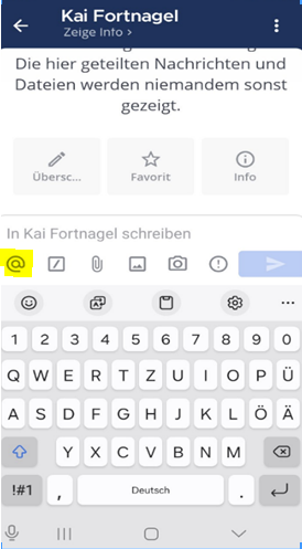 Mit dem Symbol könnt ihr Personen in euren Nachrichte markieren.