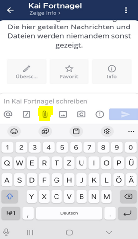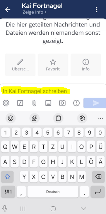 Wenn ihr dann unten auf In … schreiben drückt öffnet sich die Tastatur und ihr könnt der Person schreiben.