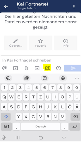 Mit dem Symbol können Fotos gemacht werden und direkt verschickt werden