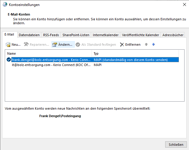 Dort wählt ihr euer Emailkonto aus und klickt auf "Ändern..." (wenn ihr mehrere Konten habt, mit den anderen nachher genau so wiederholen);
